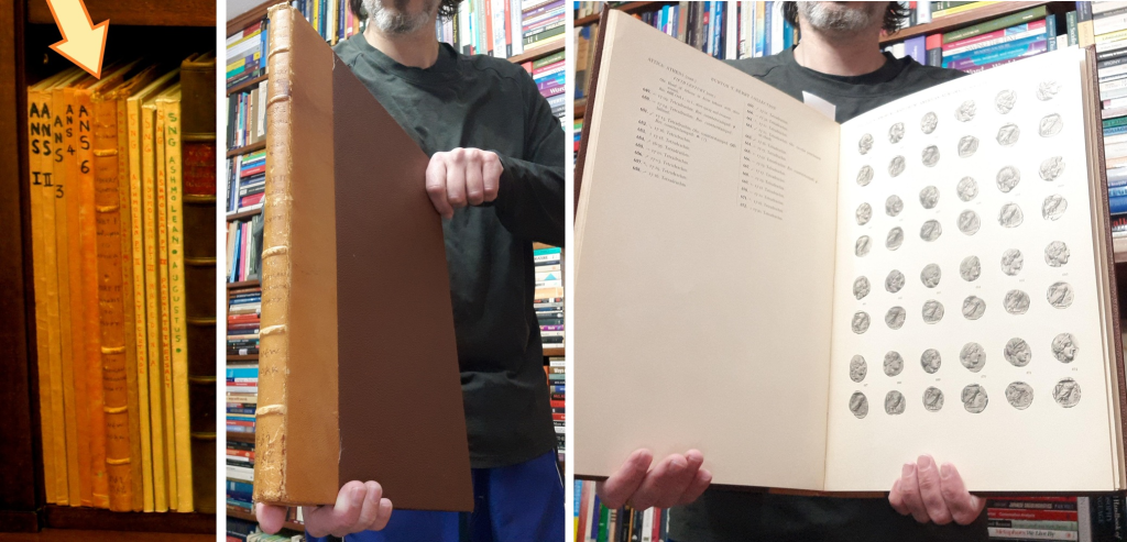 To my great surprise and delight, I was able to achieve both of my goals for this sale: (1) at least one tan leather custom “BCD Bound” volume, and (2) at least one volume illustrating coins in my collection (SNG Levante I).